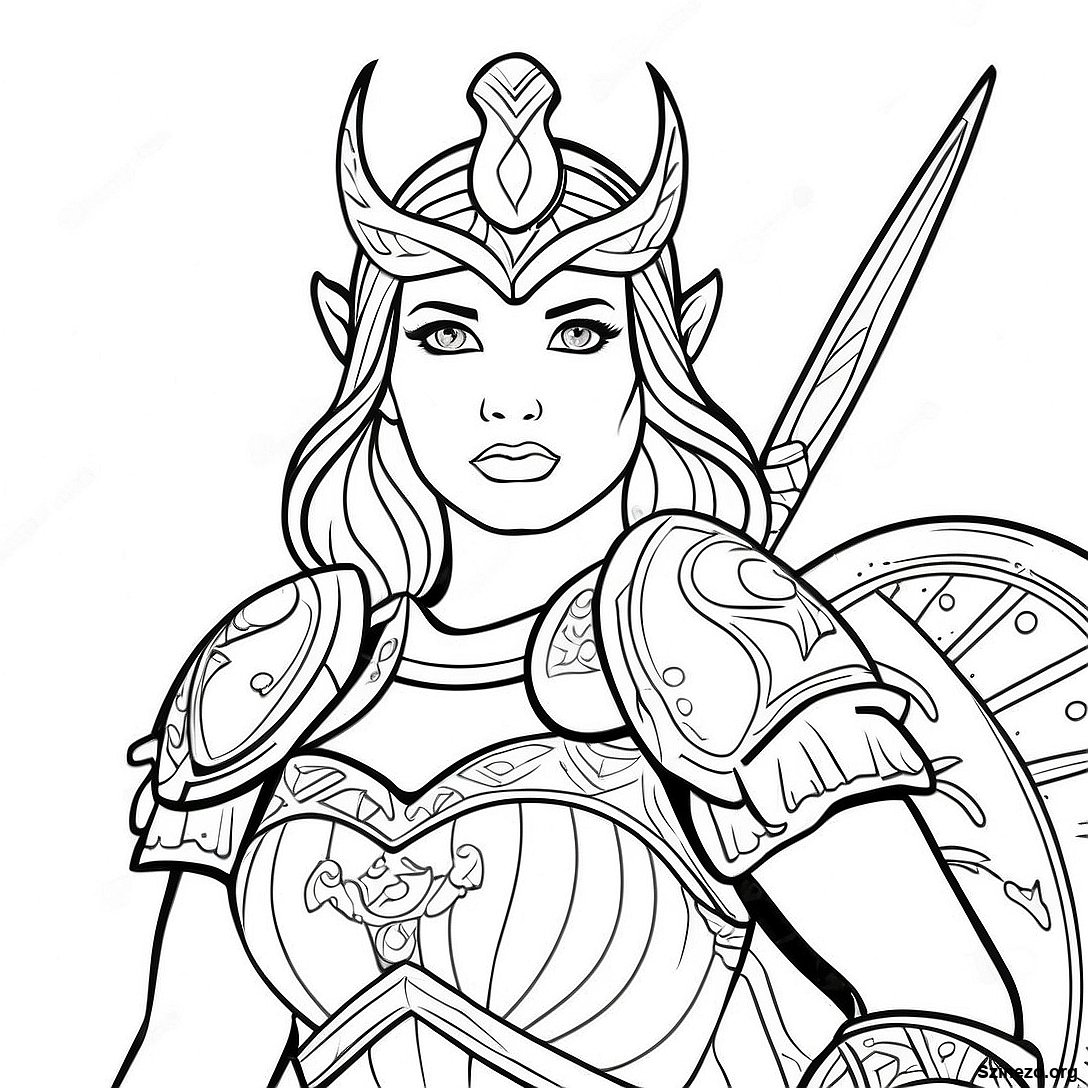 Töltse le a nyomtatható PDF verzióját a(z) Harcos Istennő Pajzzsal Színezőlap oldalnak