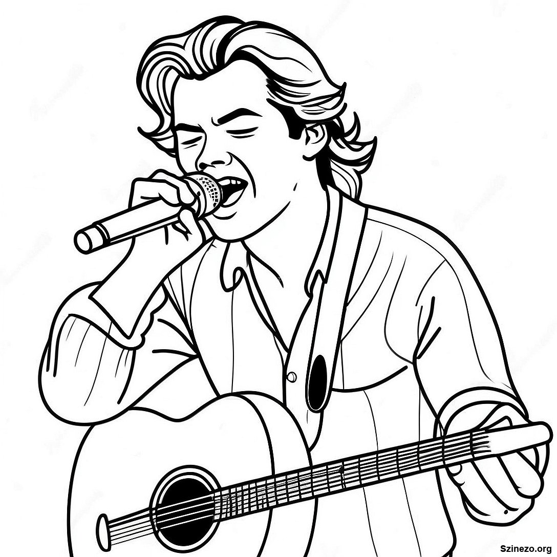 Töltse le a nyomtatható PDF verzióját a(z) Harry Styles Éneklő Színezőlap oldalnak