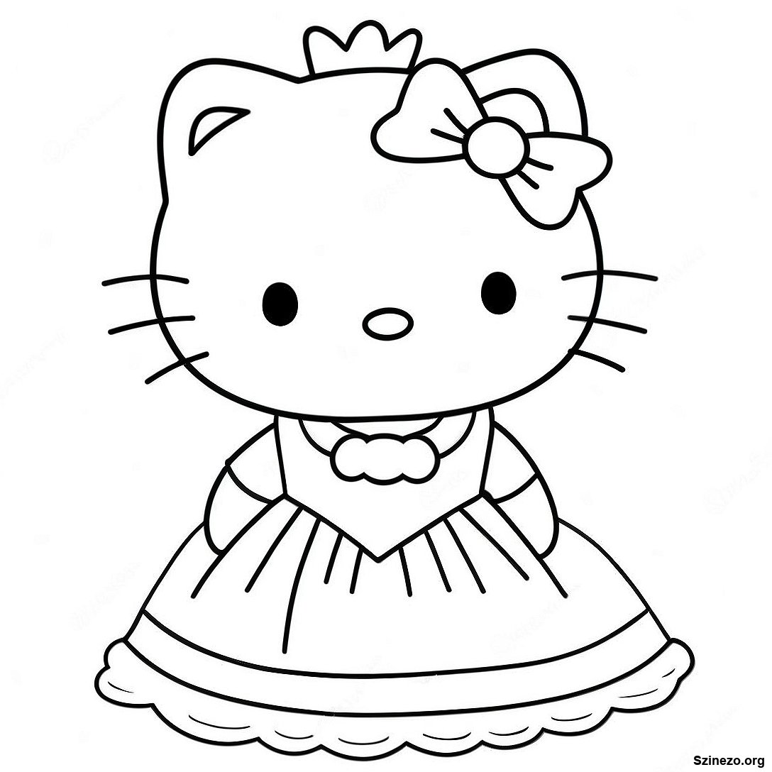 Töltse le a nyomtatható PDF verzióját a(z) Hello Kitty Ruhában Színező Oldal oldalnak