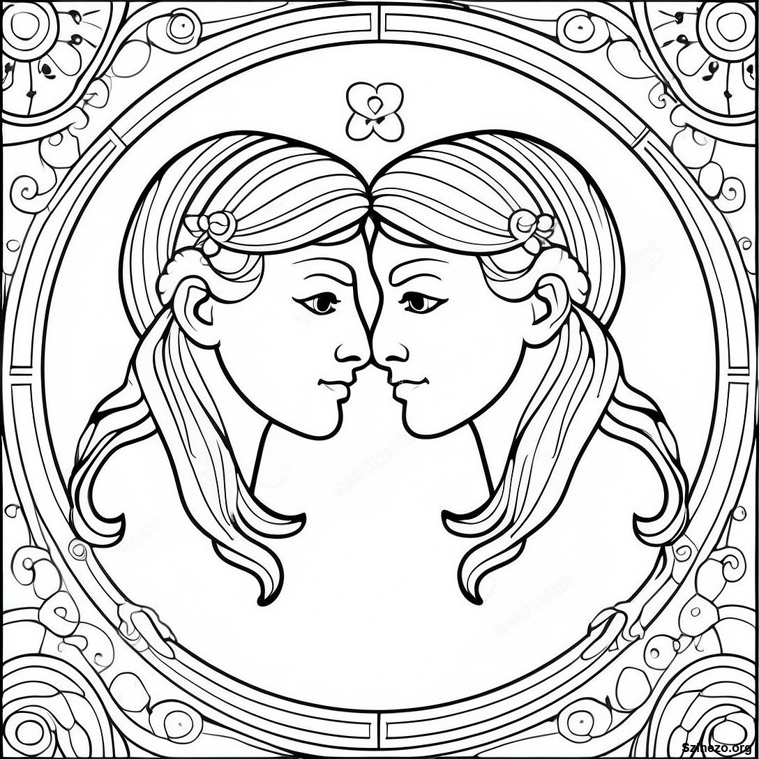 Töltse le a nyomtatható PDF verzióját a(z) Ikrek Zodiákus Színezőlap oldalnak