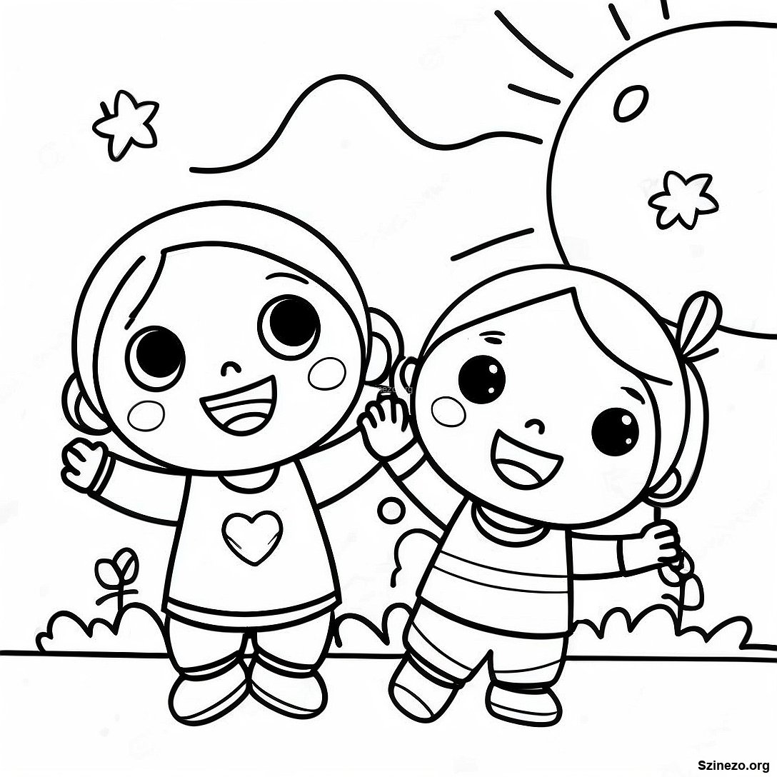 Töltse le a nyomtatható PDF verzióját a(z) Izgatott Gyerekek Az Óvoda Első Napján Színezőlap oldalnak