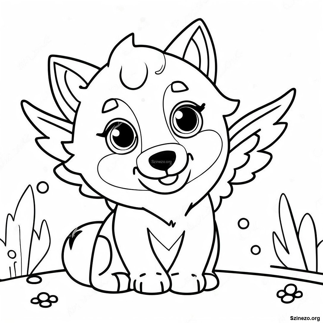 Jatekos Baba Farkas Csillogo Szarnyakkal Szinezooldal
