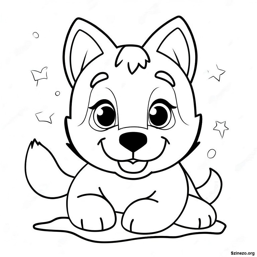 Töltse le a nyomtatható PDF verzióját a(z) Játékos Husky Kölyök Színezőlap oldalnak