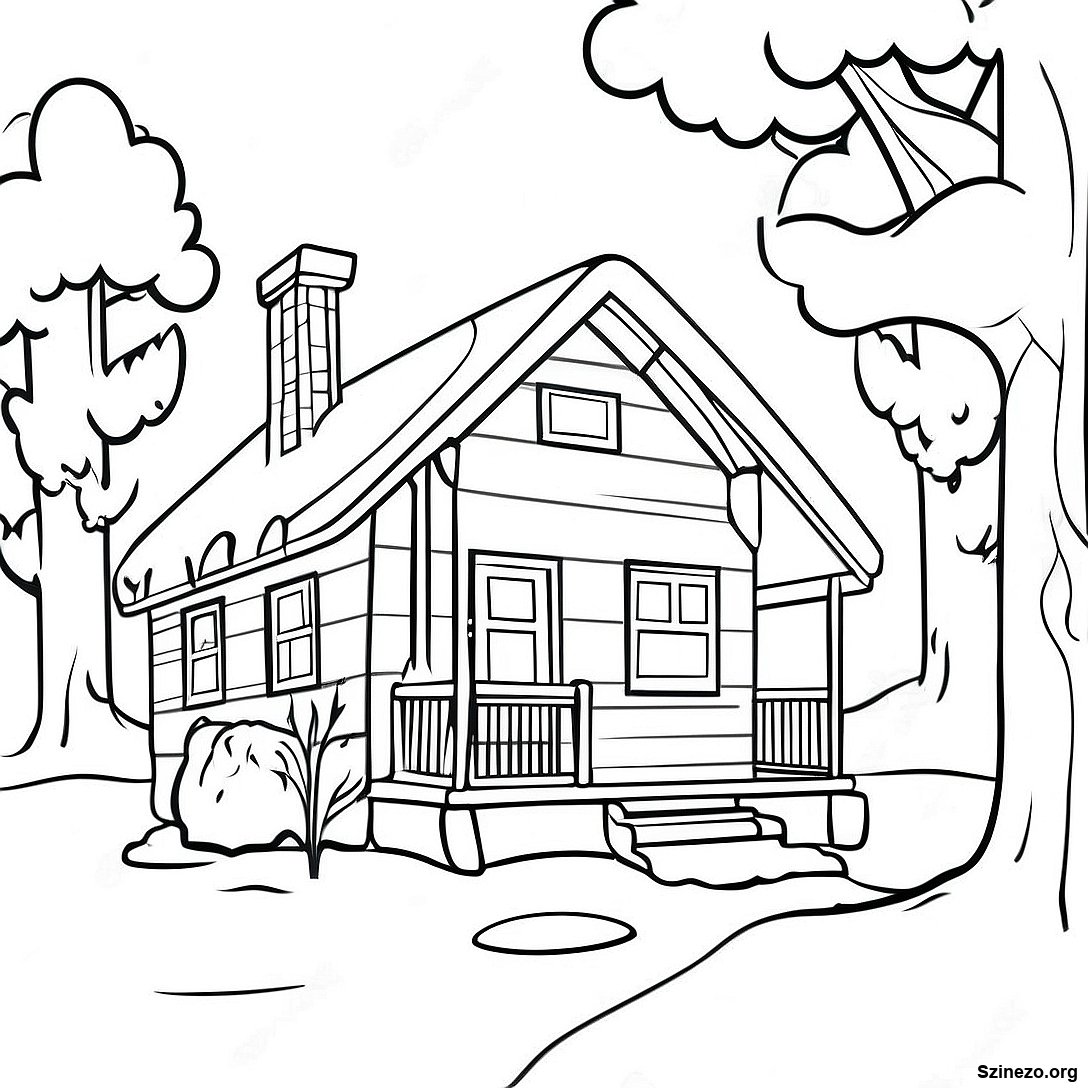 Kényelmes Januári Kunyhó Színezőlap