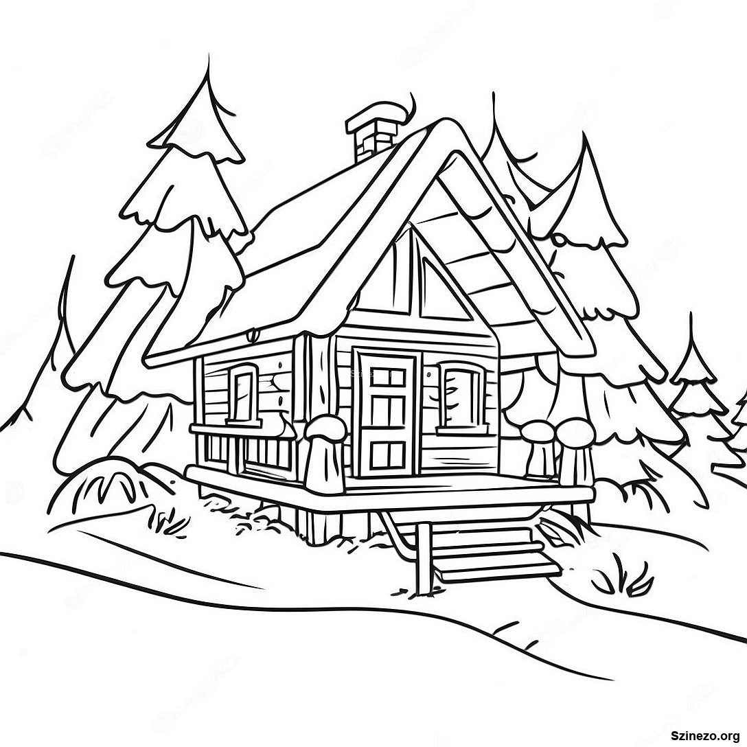 Kényelmes Téli Kunyhó Jelenet Színezőlap