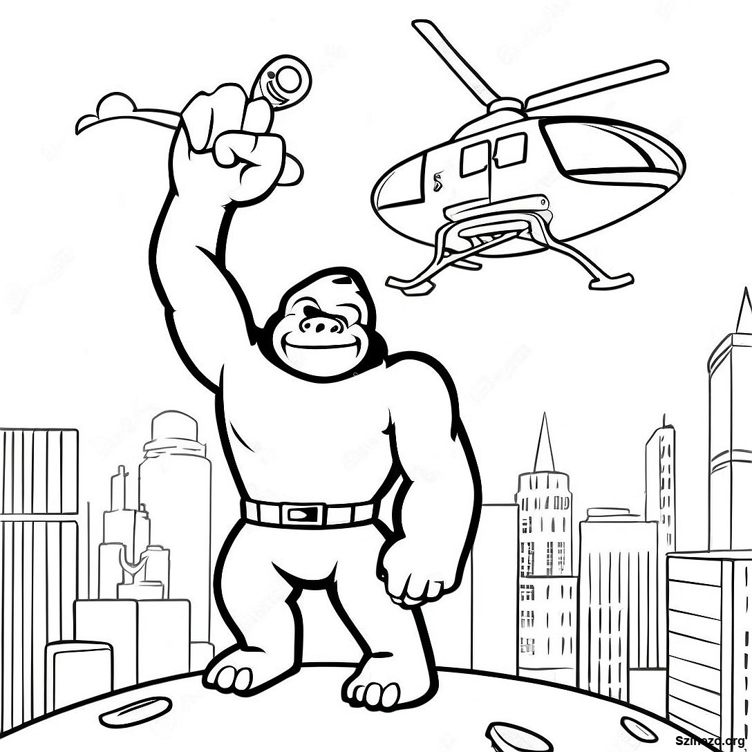 Töltse le a nyomtatható PDF verzióját a(z) King Kong Helikoptert Tart Színezőlap oldalnak