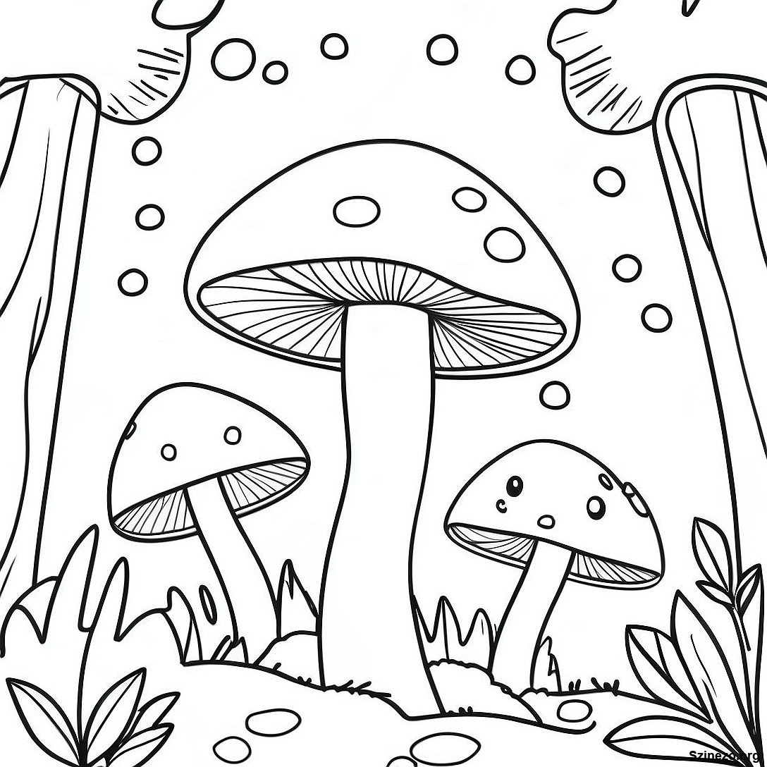 Töltse le a nyomtatható PDF verzióját a(z) Különös Gombaerdő Színezőlap oldalnak