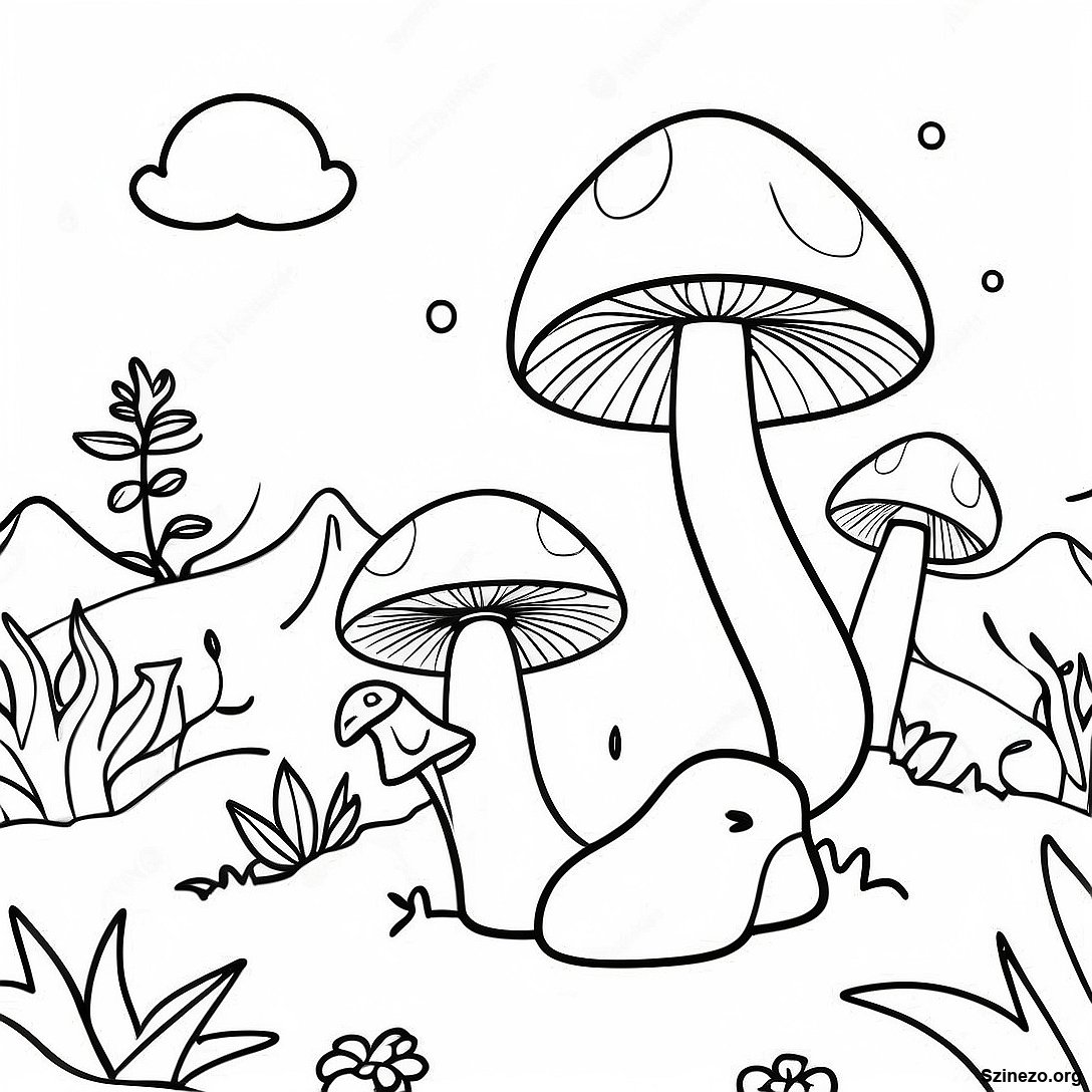 Töltse le a nyomtatható PDF verzióját a(z) Különös Gombaerdő Színezőlap oldalnak