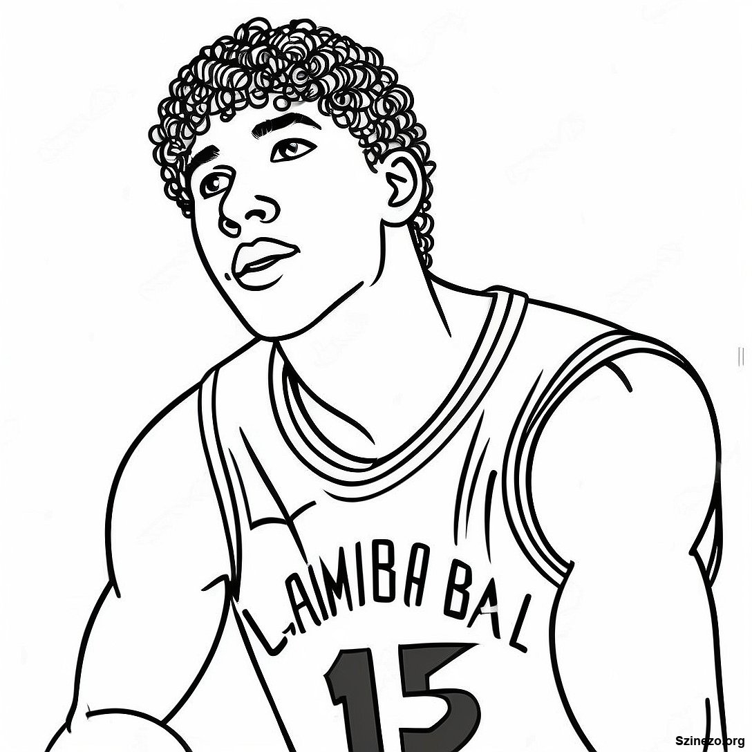 Töltse le a nyomtatható PDF verzióját a(z) Lamelo Ball Kosárlabdával Színezőlap oldalnak