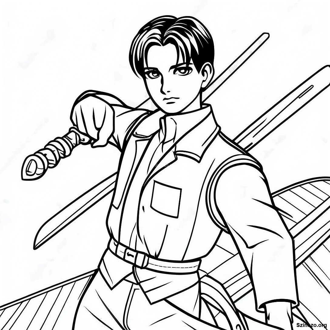 Töltse le a nyomtatható PDF verzióját a(z) Levi Ackerman Késekkel Színező Oldal oldalnak
