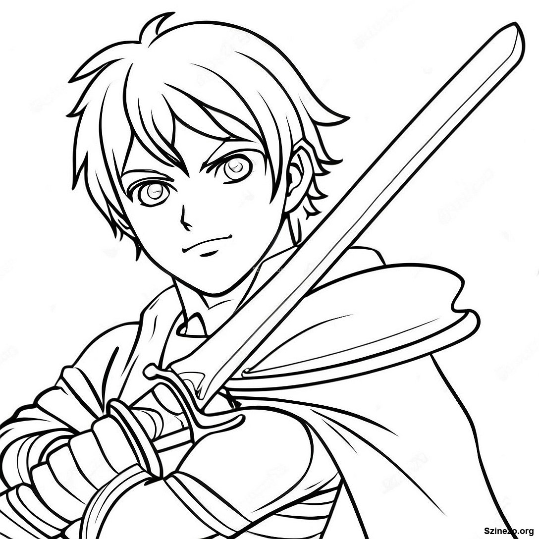 Töltse le a nyomtatható PDF verzióját a(z) Manga Hős Karddal Színezőlap oldalnak