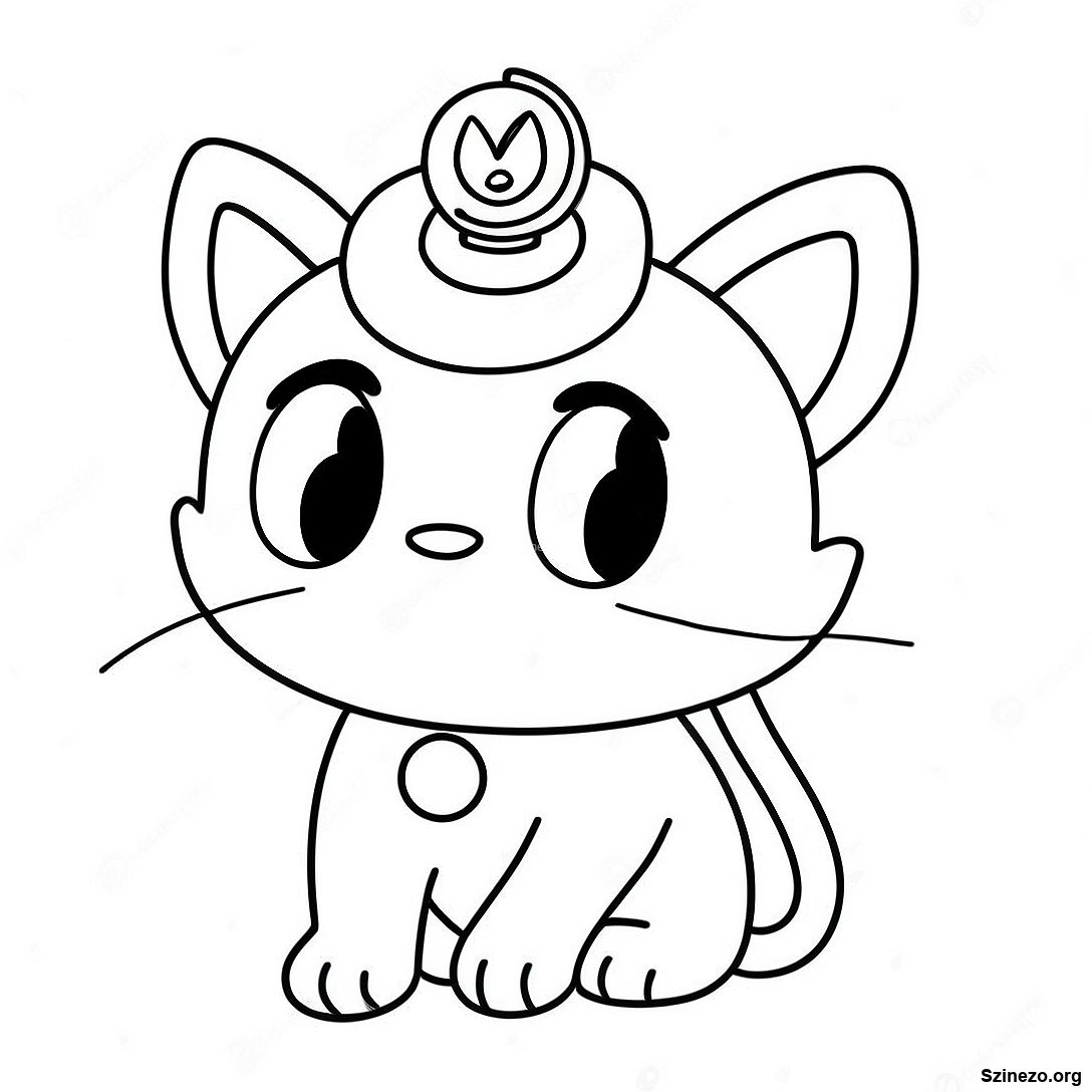Töltse le a nyomtatható PDF verzióját a(z) Meowth Érme A Fején Színező Oldal oldalnak