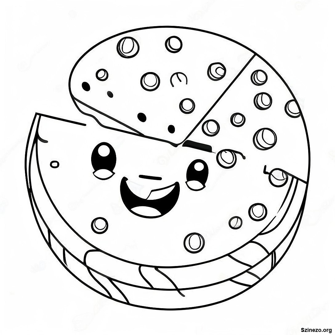 Töltse le a nyomtatható PDF verzióját a(z) Mosolygó Arcú Sajtkerék Színezőlap oldalnak
