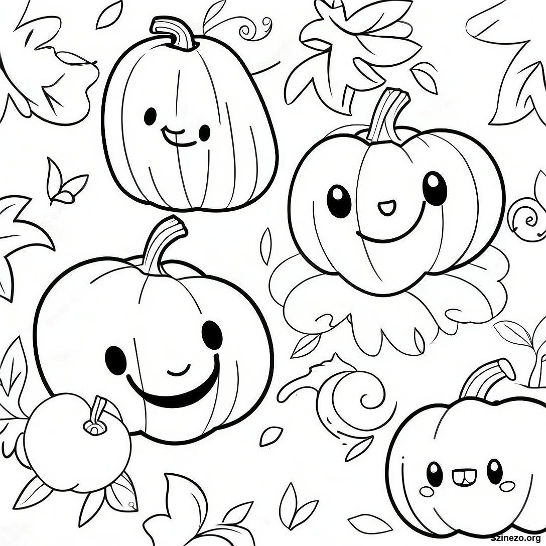 Töltse le a nyomtatható PDF verzióját a(z) Mosolygó Tök Arcok Színezőoldal oldalnak