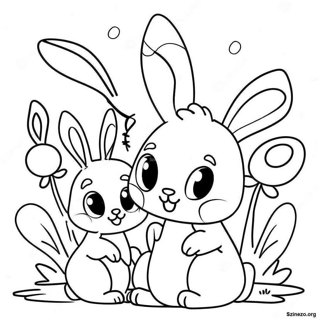 Töltse le a nyomtatható PDF verzióját a(z) Napfényes Nyuszi Család Színezőlap oldalnak
