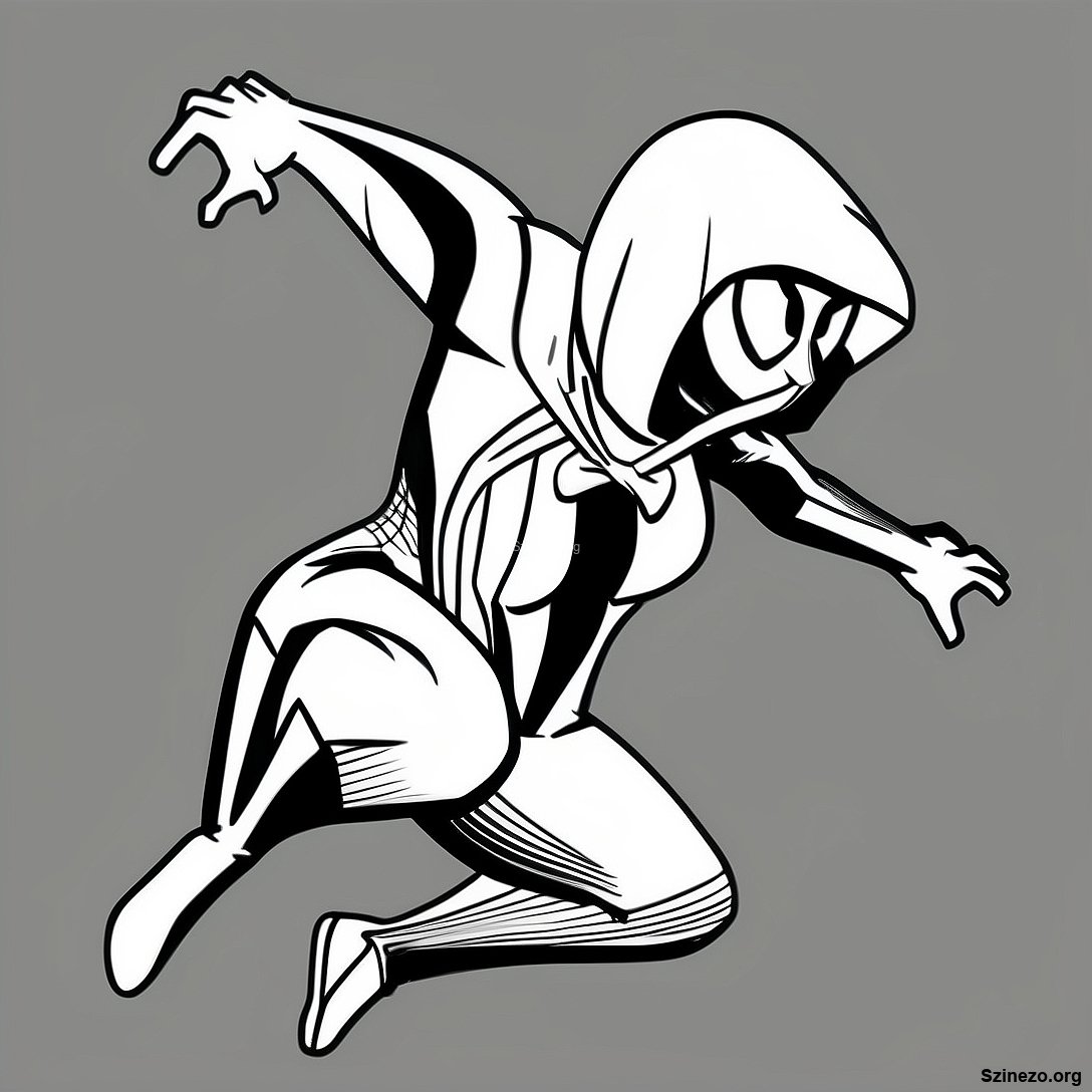 Töltse le a nyomtatható PDF verzióját a(z) Pók Gwen Akció Pozícióban Színező oldalnak