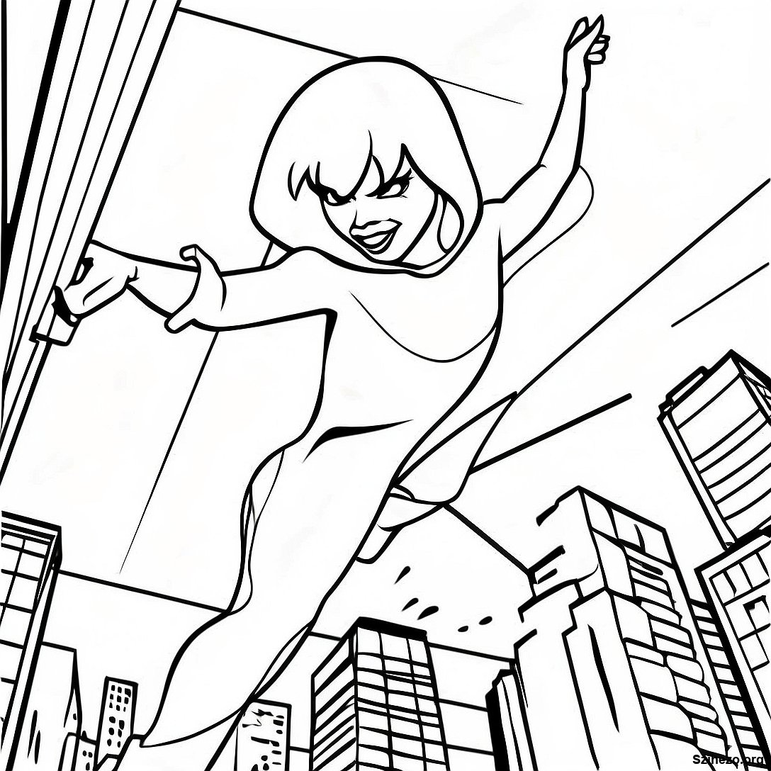 Töltse le a nyomtatható PDF verzióját a(z) Pók Gwen Leng A Városban Színező oldalnak
