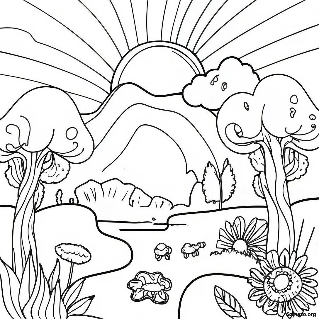 Pszichedelikus Esztétikus Trippy Táj Színezőlap