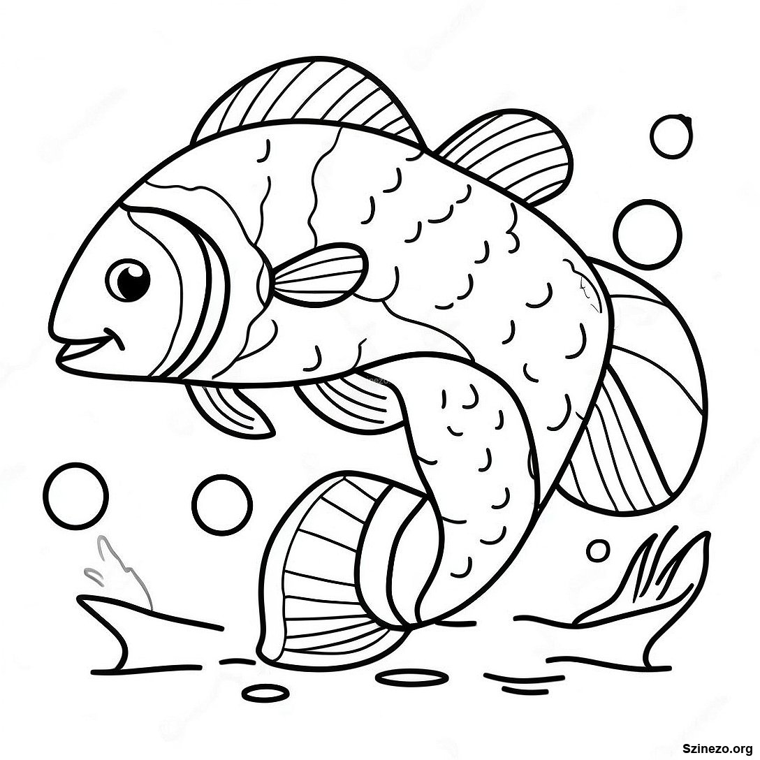 Töltse le a nyomtatható PDF verzióját a(z) Rajzfilm Lazac Úszik Színező Oldal oldalnak