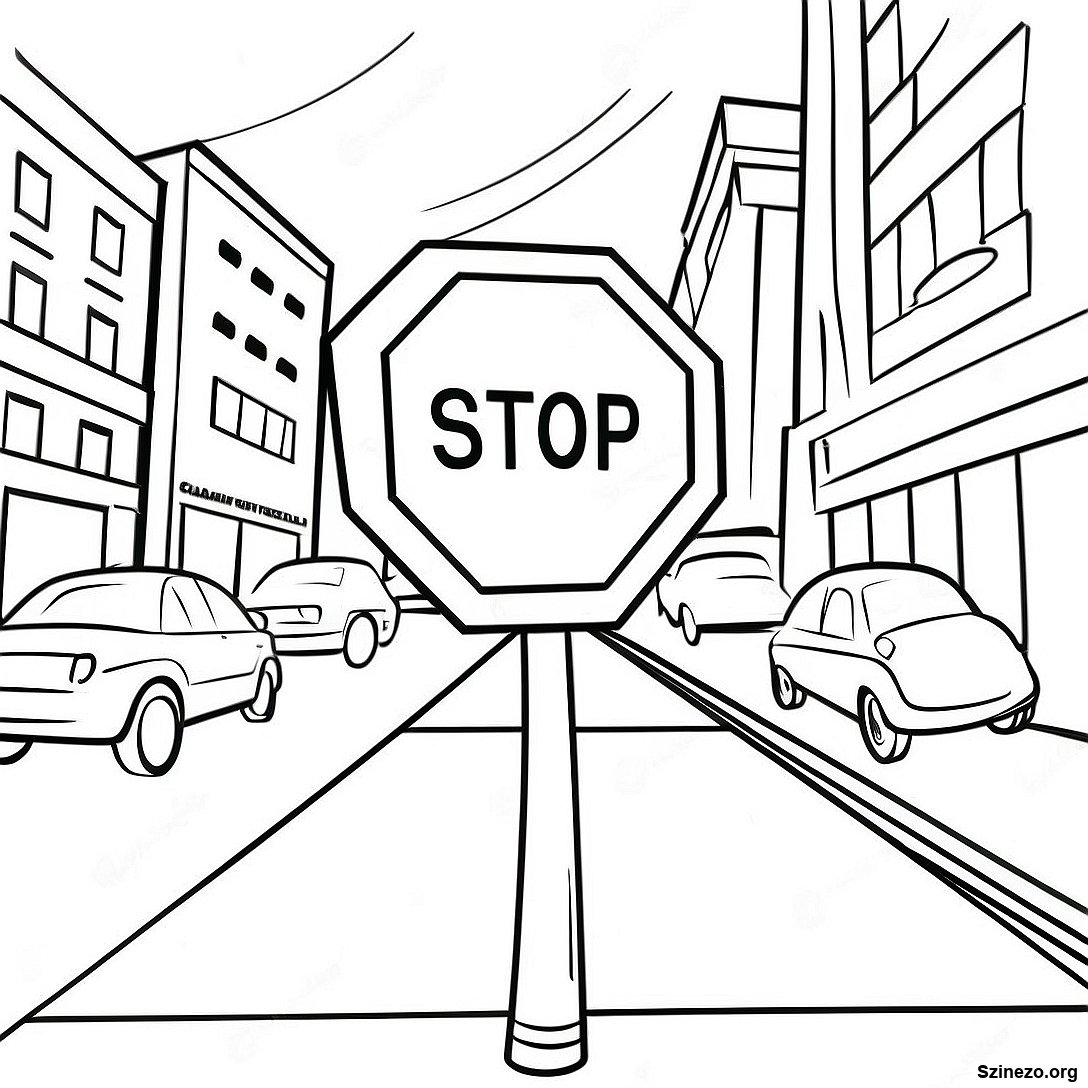 Töltse le a nyomtatható PDF verzióját a(z) Rajzfilm Megállító Tábla Egy Városban Színezőlap oldalnak