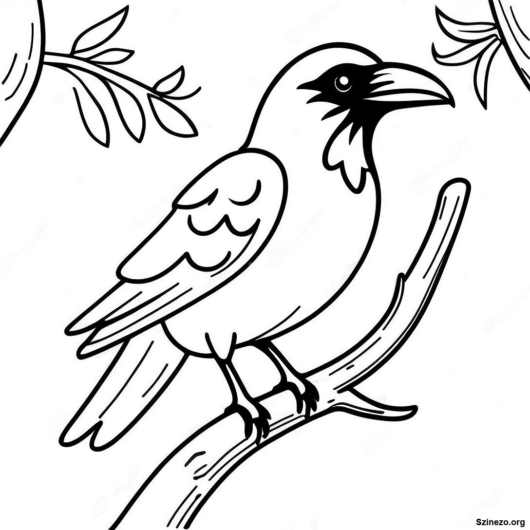 Töltse le a nyomtatható PDF verzióját a(z) Realisztikus Holló Ágon Ülve Színezőlap oldalnak
