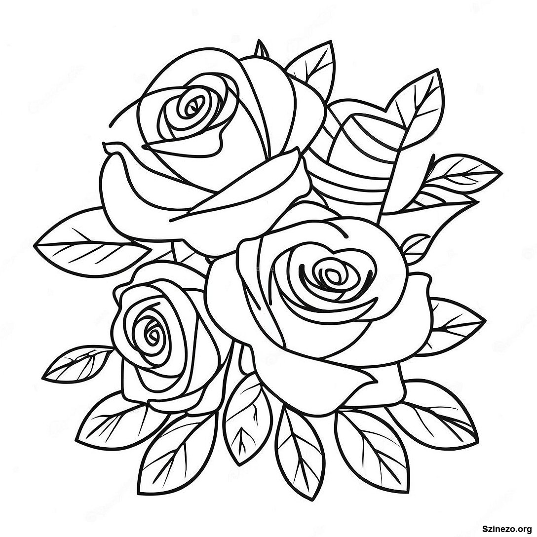 Töltse le a nyomtatható PDF verzióját a(z) Romantikus Rózsacsokor Színező Oldal oldalnak