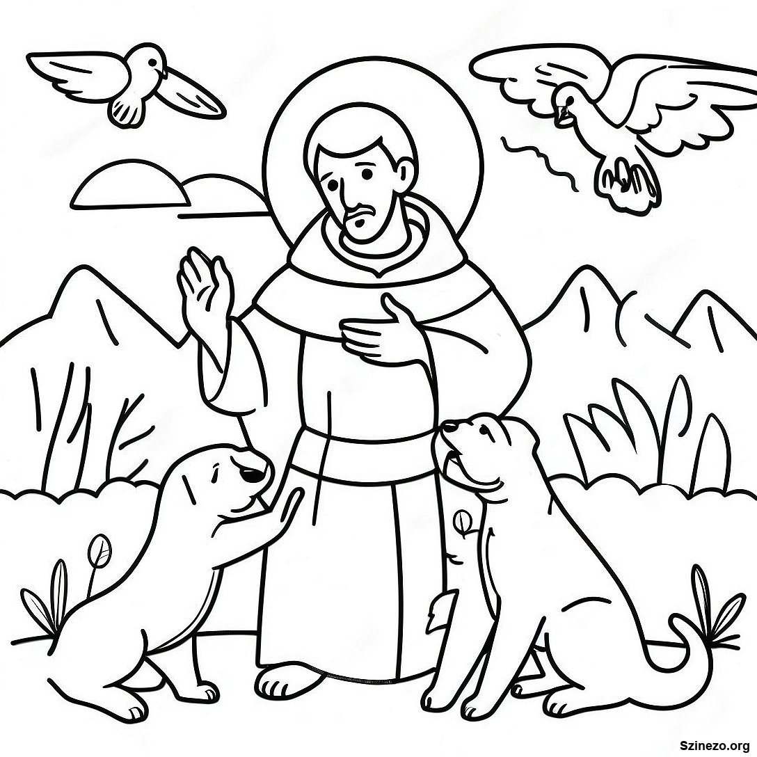 Szent Ferenc Állatokkal Színező Oldal