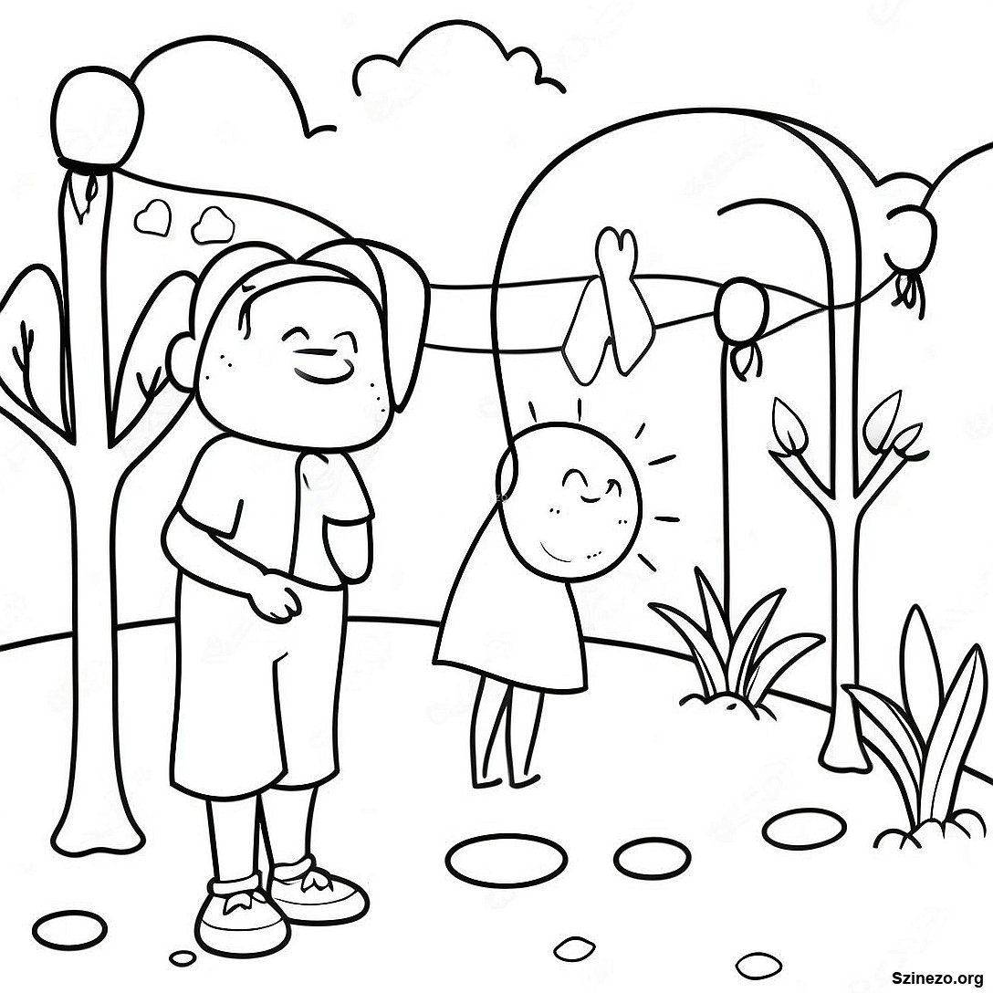 Töltse le a nyomtatható PDF verzióját a(z) Színes Reményteljes Jelenet Színezőlap oldalnak