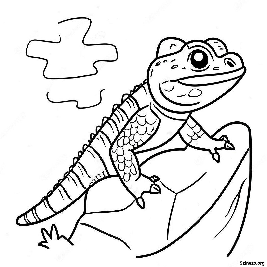 Színes Szakállas Sárkány Mászik A Kőre Színezőlap