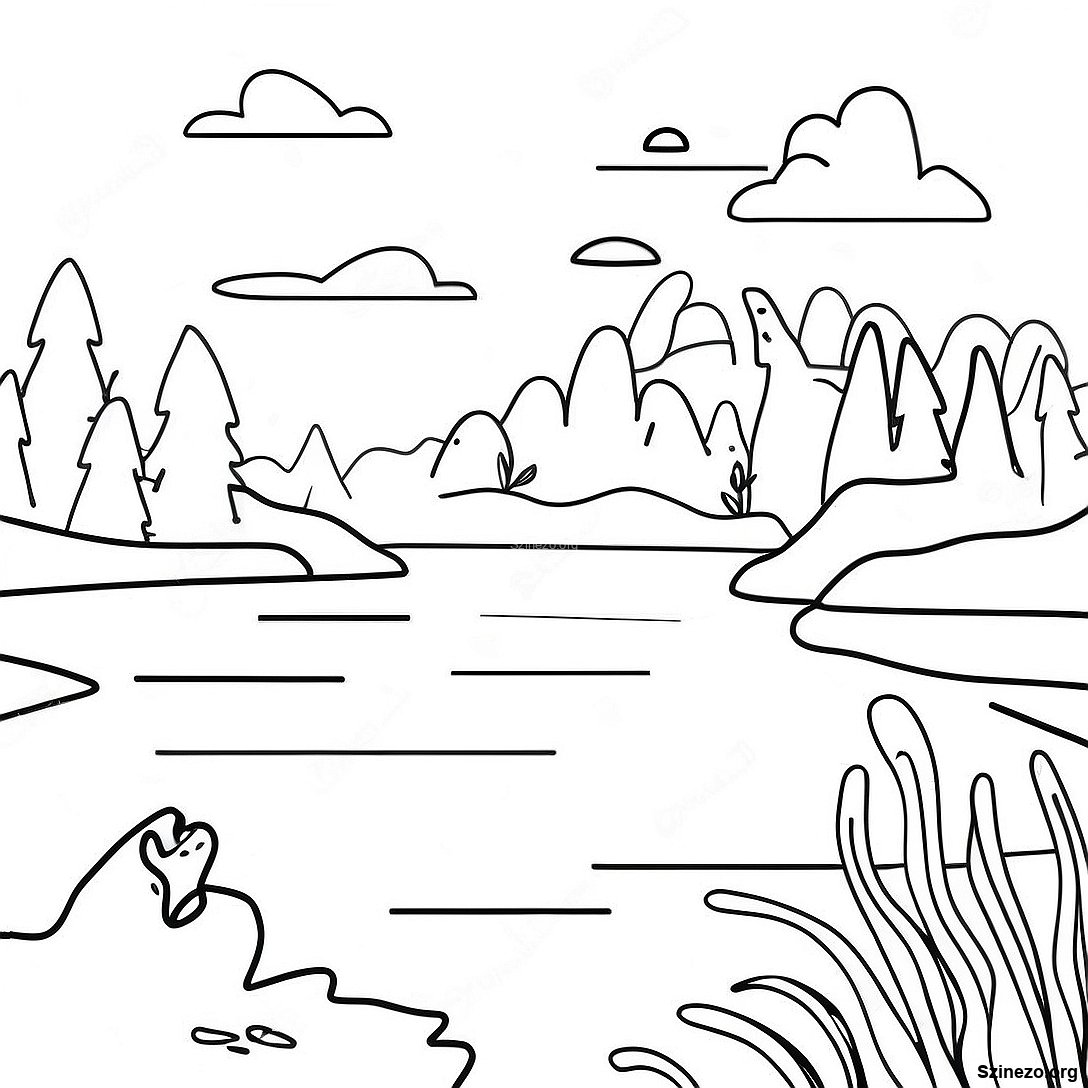 Töltse le a nyomtatható PDF verzióját a(z) Színes Tó Alkalmazás Naplemente Színező Oldal oldalnak