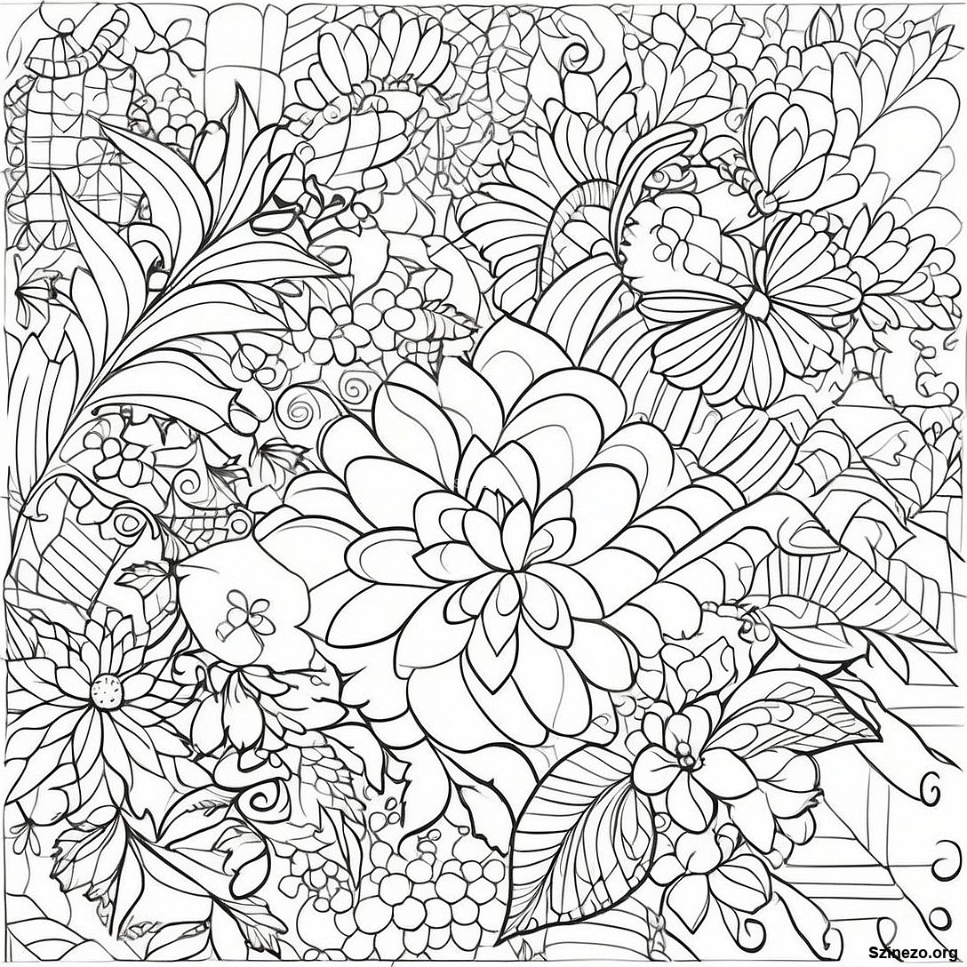 Tavaszi Virágok és Húsvéti Tojások Színezőoldalon