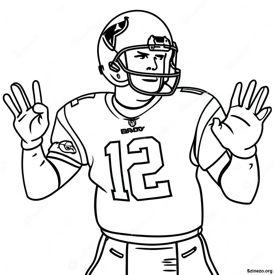 Töltse le a nyomtatható PDF verzióját a(z) Tom Brady Akcióban Színezőlap oldalnak