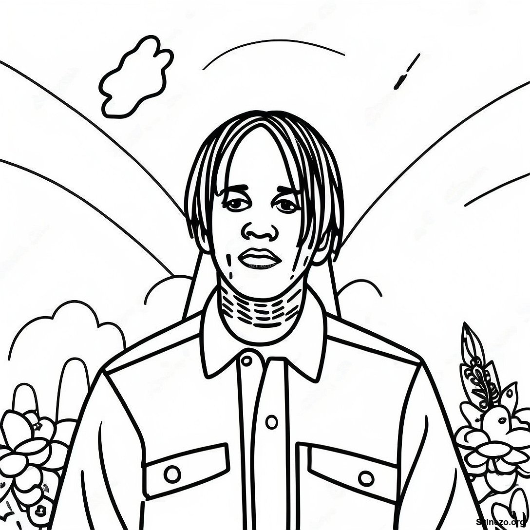 Töltse le a nyomtatható PDF verzióját a(z) Travis Scott Astroworld Háttérrel Színezőlap oldalnak
