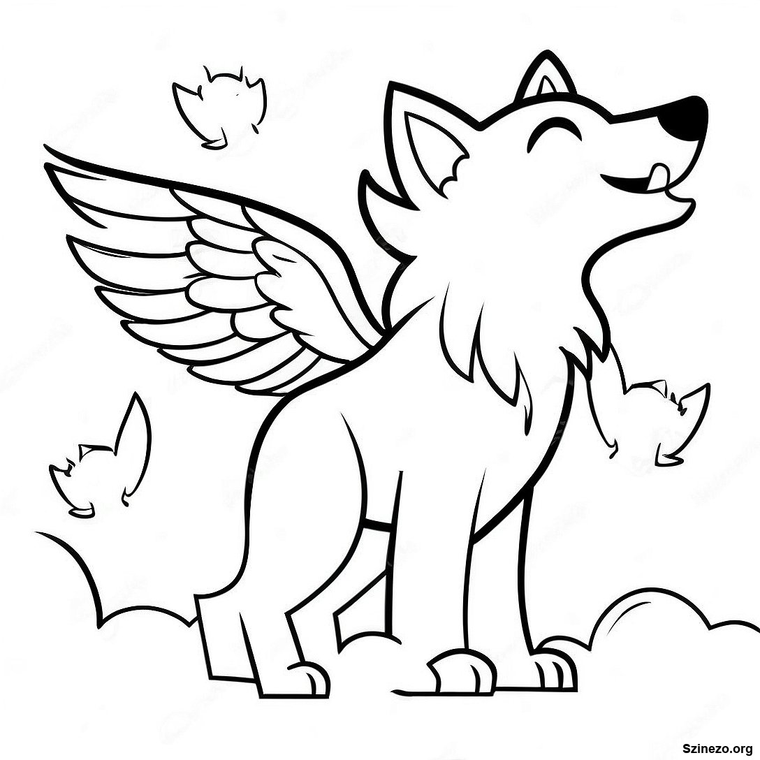 Üvöltő Farkas Színes Szárnyakkal Színezőlap
