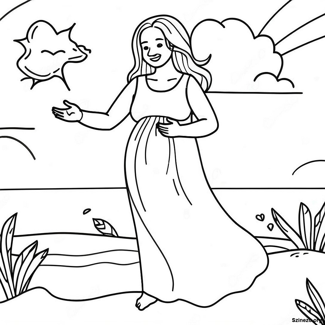 Töltse le a nyomtatható PDF verzióját a(z) Vidám Terhes Nő Nyári Ruhában Színezőlap oldalnak