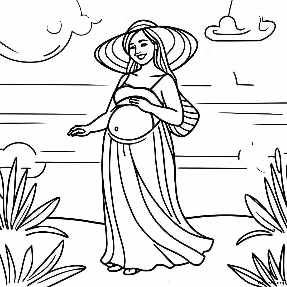 Töltse le a nyomtatható PDF verzióját a(z) Vidám Terhes Nő Nyári Ruhában Színezőlap oldalnak