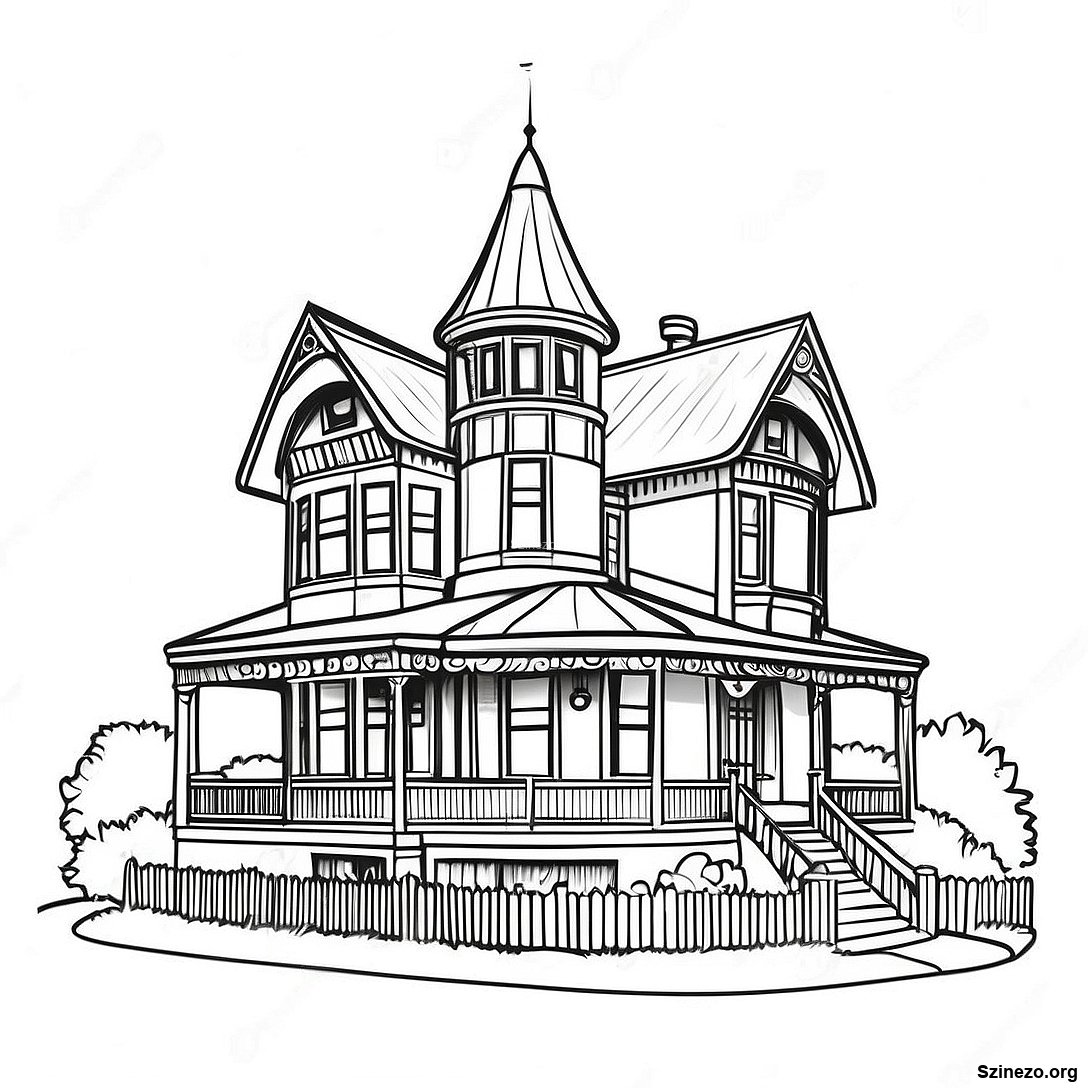 Töltse le a nyomtatható PDF verzióját a(z) Viktoriánus Kastély Színező oldalnak