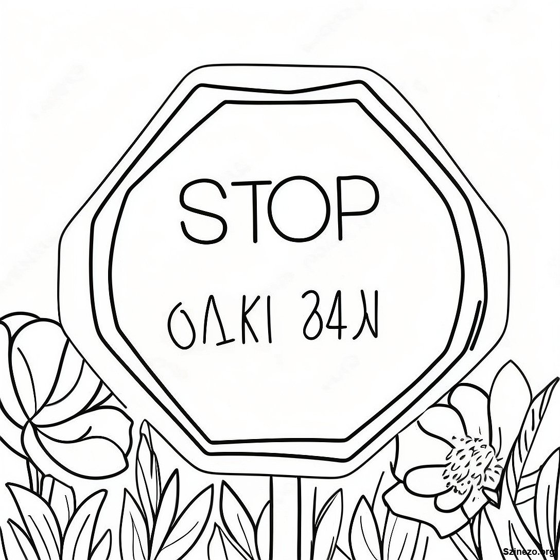 Virágokkal Körülvett Megállító Tábla Színezőlap