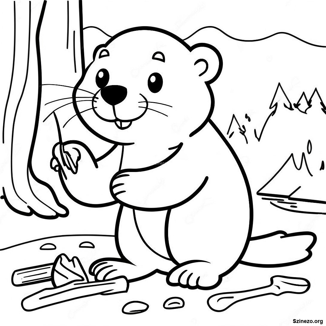 Zsúfolt Hód, Aki Egy Kunyhón Dolgozik Színezőoldal
